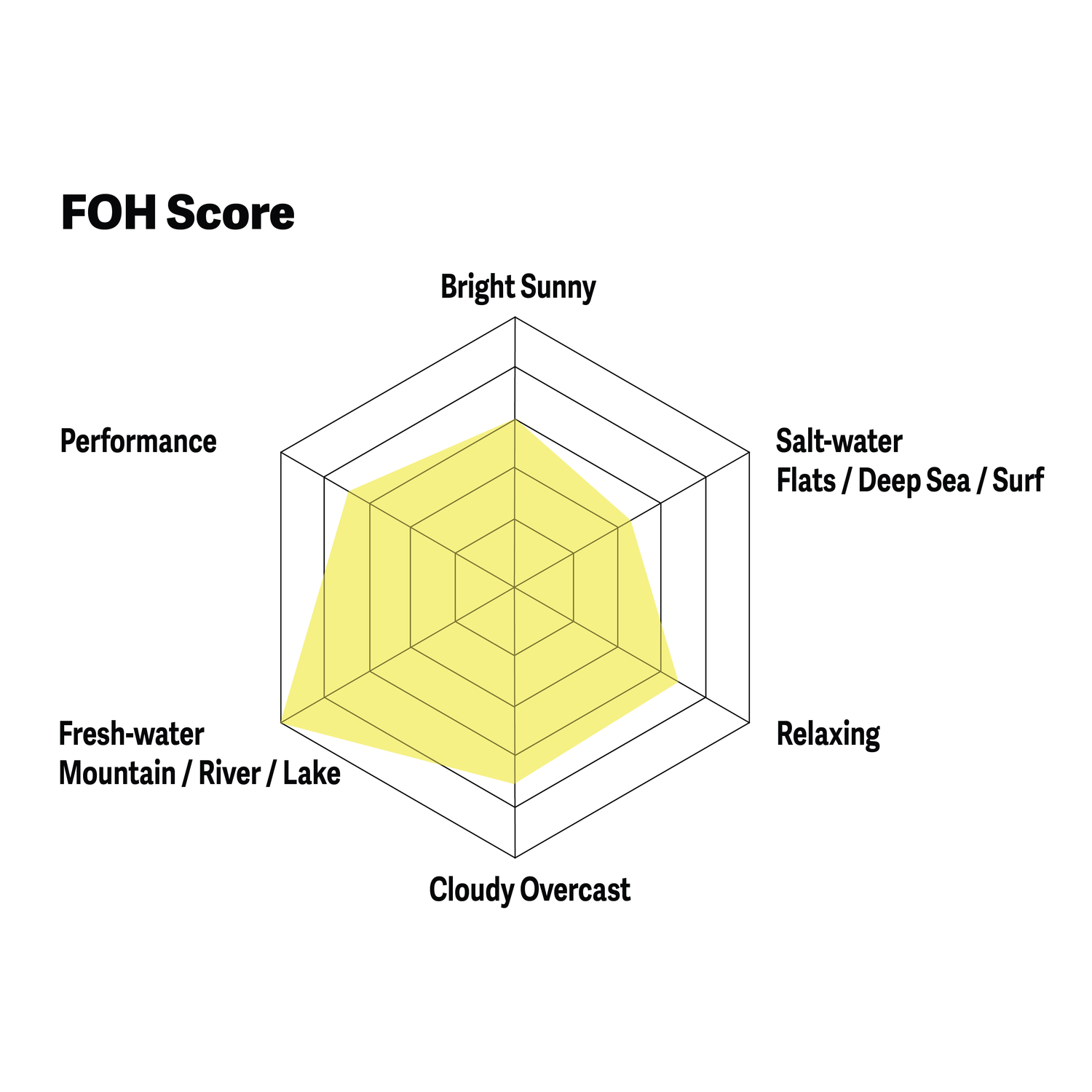 FOH Score helps you choose the right hat for your fishing adventure. Pick the hat that lets you thrive in the fishing environment whether it's a familiar local spot or uncharted territory. The hexagonal scoring is based on the hat's structure, material and colorway.